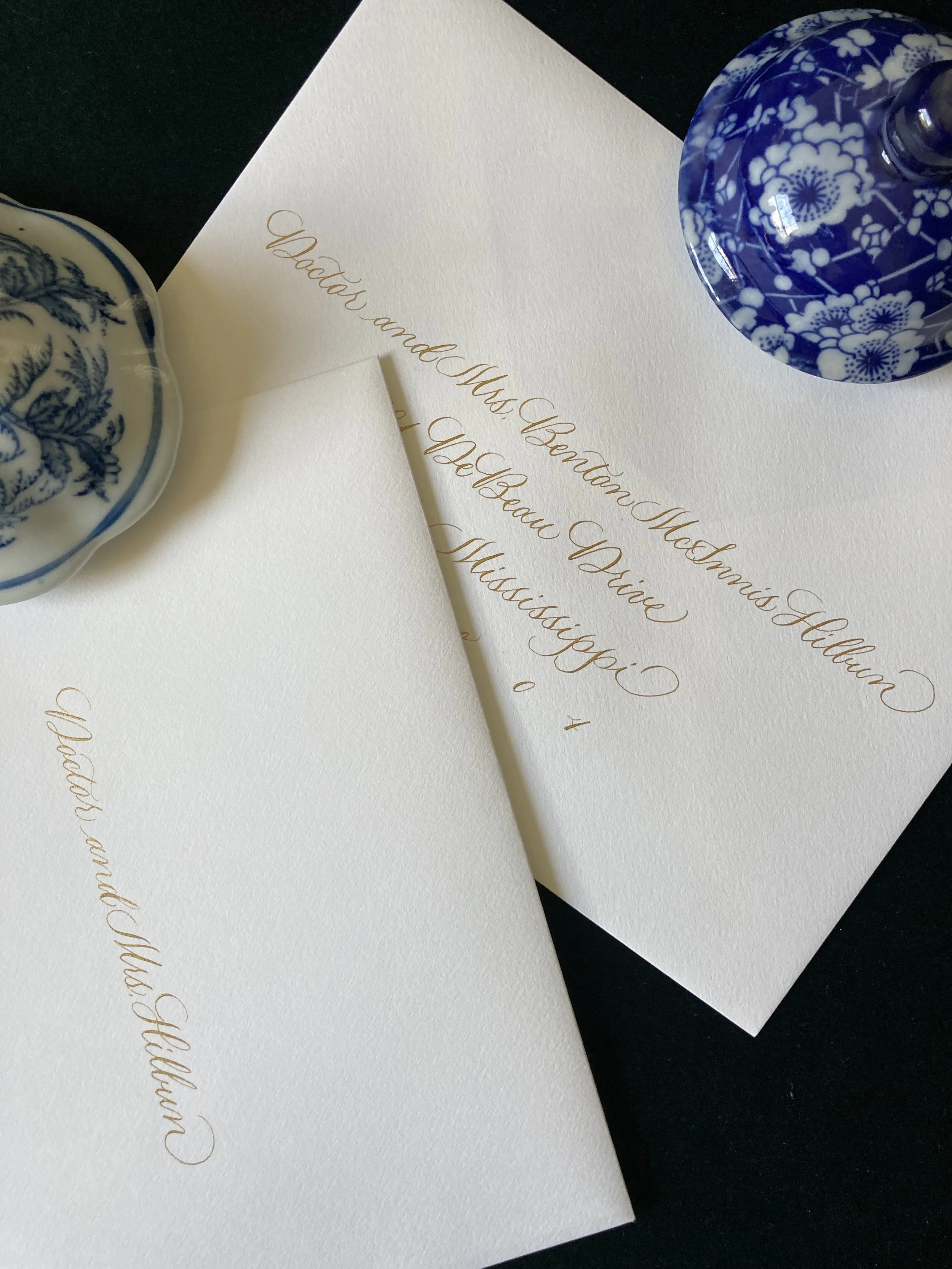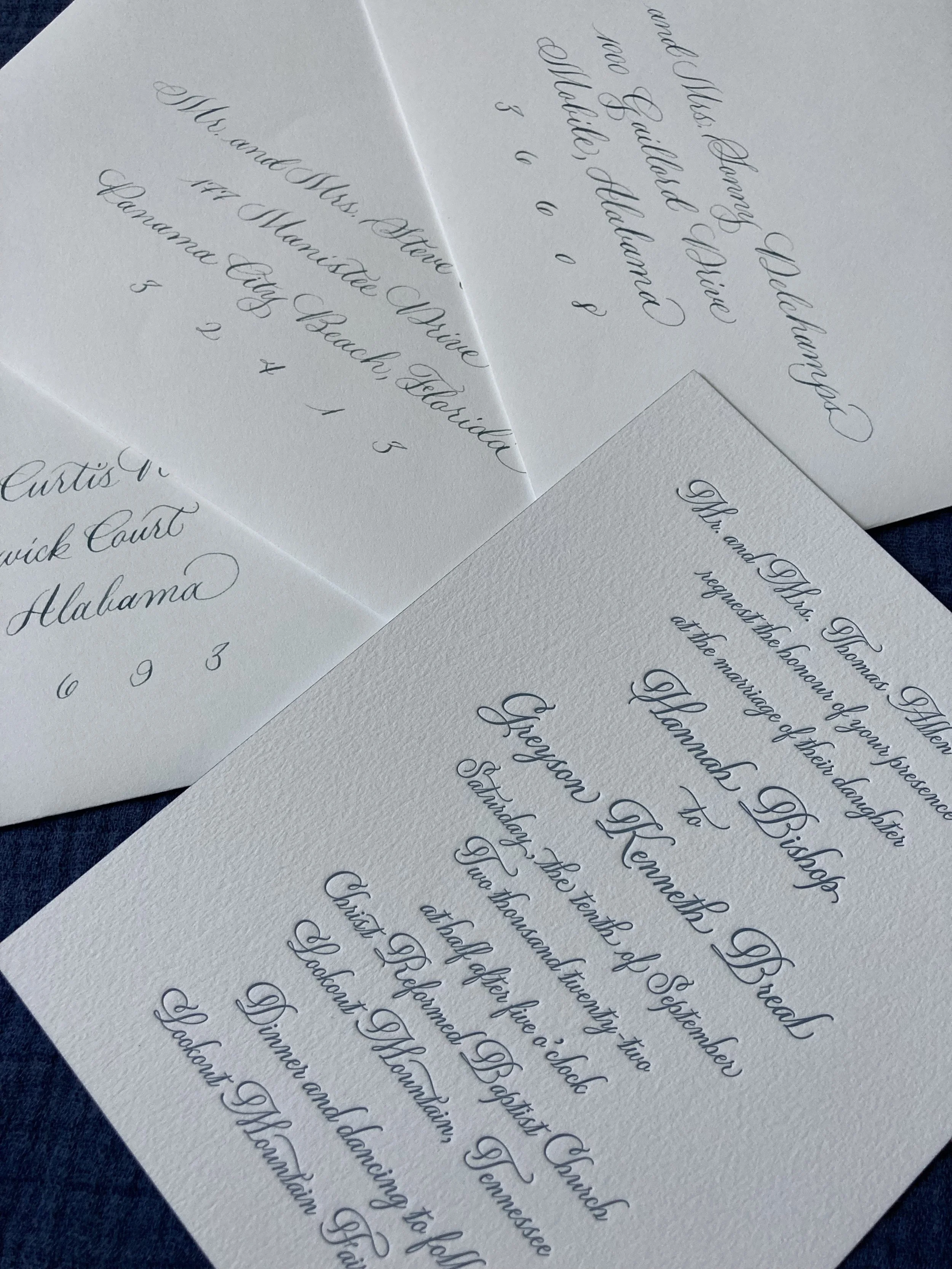 flourished copperplate envelope addressing